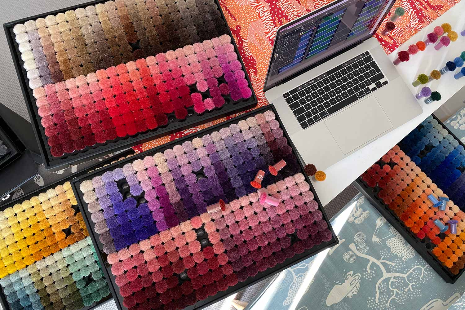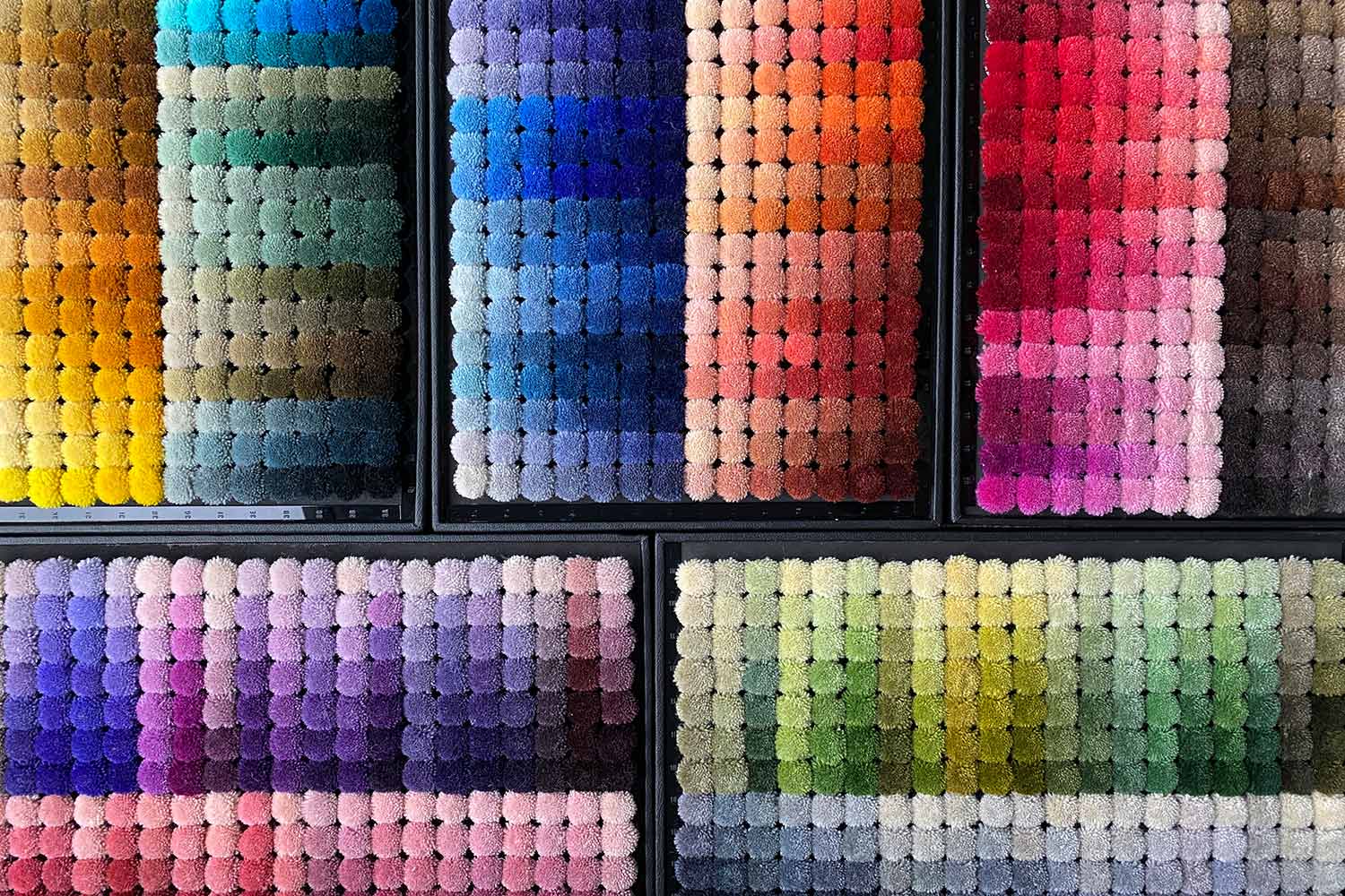 Looking to tweak colours or create a brand new colourway? It’s all possible. We can create custom rugs colour matched to any materials in your scheme including paint colours, fabric samples, artwork or pantone shades. We will create digital mock-ups to help you visualise different options and can work remotely over email or video call to pick from our palette of 1400 wool poms.
