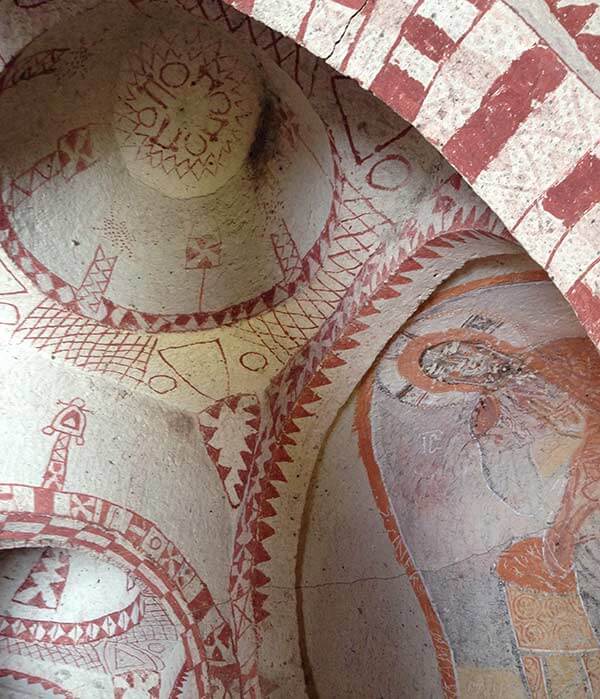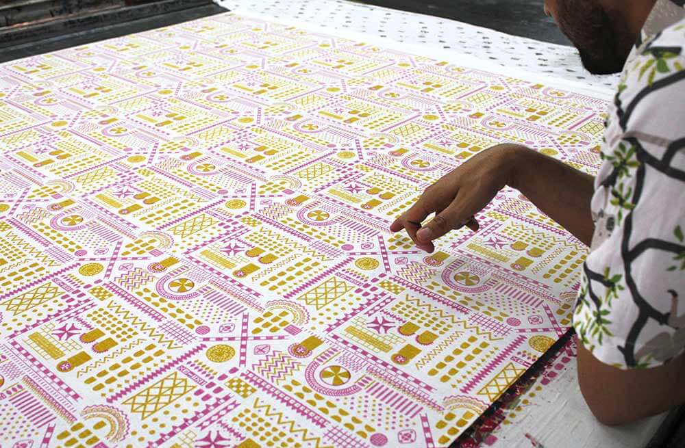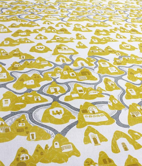 Our Stone Symbol print references the geometry of rock-cut windows, doors and pigeon houses, alongside churches painted with symbolic frescoes.
