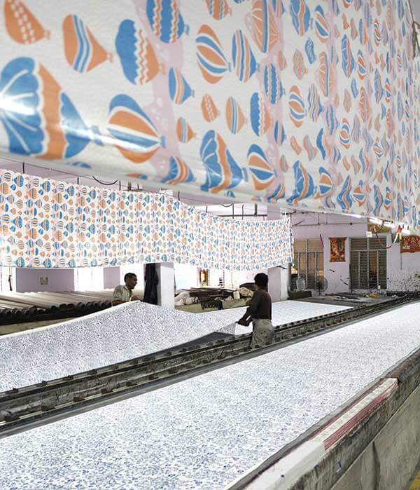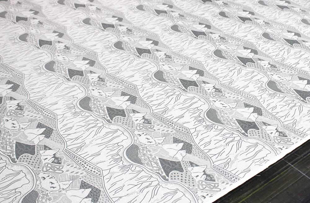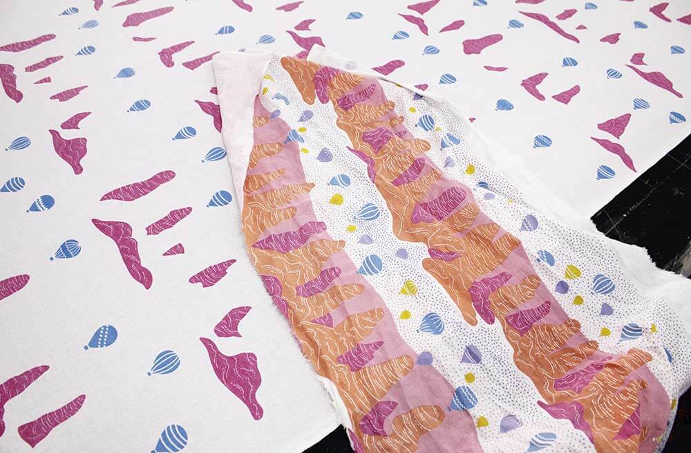 We went in a hot air balloon and experienced the amazing views for ourselves. They inspired the Valley Views print, an intricate pattern of farms, rock formations and ranches, as seen from above.