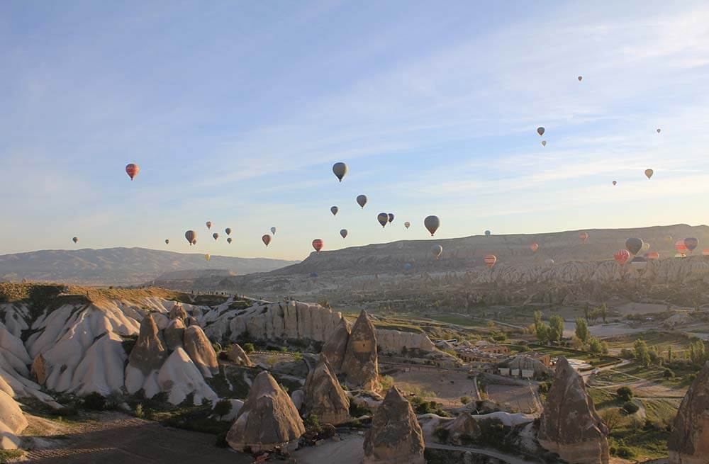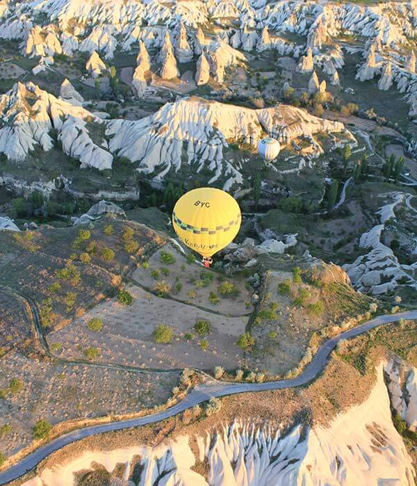 With its stunning scenery, Cappadocia is a popular place for hot air ballooning. It's a special sight to get up early and see hundreds of hot air balloons taking off into the sky, as illustrated in our Balloons at Dawn print.