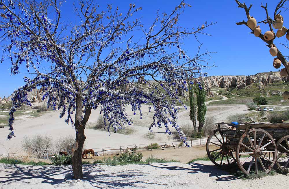 Eye shaped amulets or 'Nazar Boncugu' to ward off the evil eye are a very common talisman in Turkey. A tree covered in thousands of evil eye amulets inspired our Evil Eye Tree print, which we hope might offer you some protection at home.