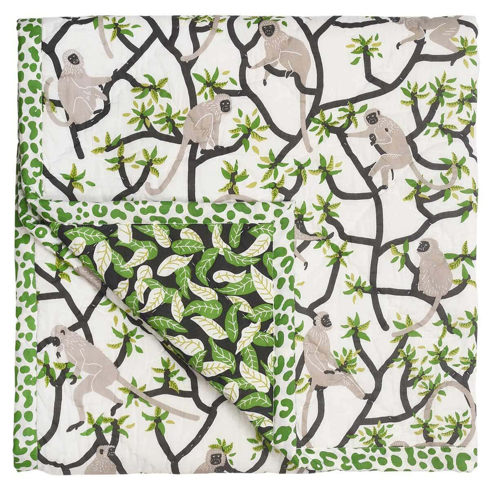 Illustrated with a lively monkey pattern on one side and leaf print on the reverse, the langur baby quilt is a new favourite of ours. Printed and quilted by hand, it makes a truly special baby shower gift and we're sure it will be loved and treasured by children and parents alike.