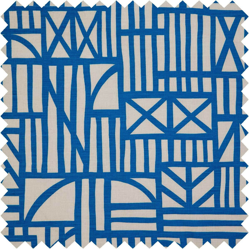 Hand screen printed in a punchy cobalt blue, the large scale pattern brings a bold energy that is softened by a light ecru background.