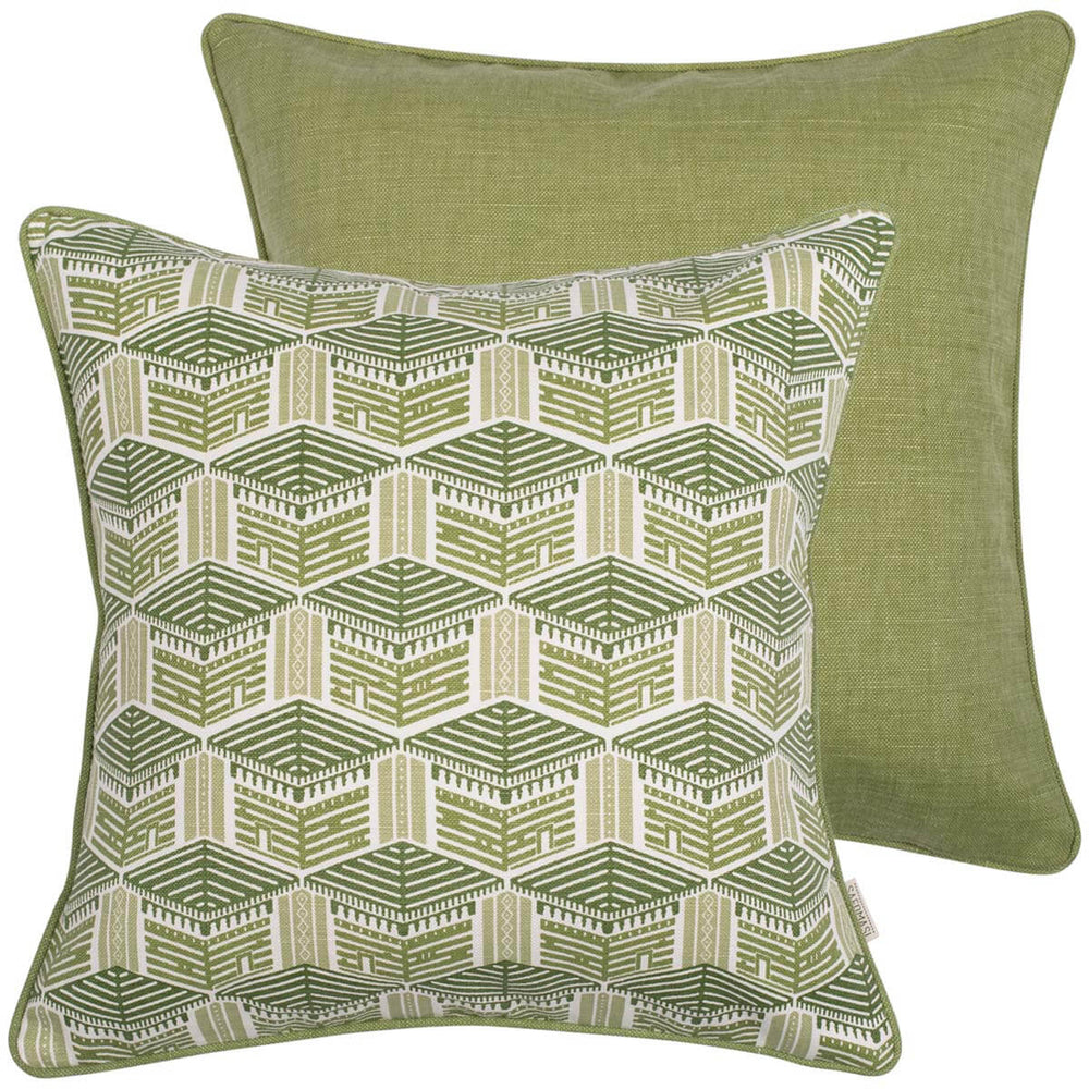 Lift your interiors with this architecture inspired cushion hand printed in soothing shades of green.