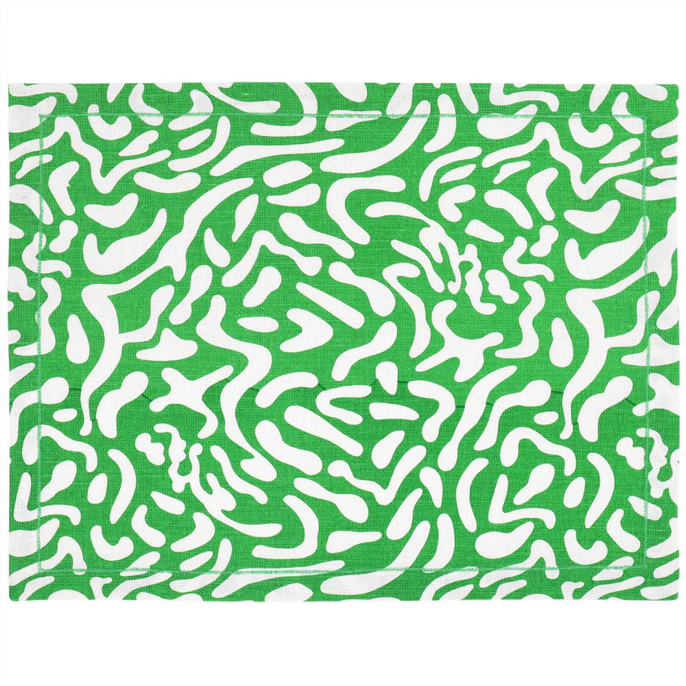 Hand screen printed in verdant green the attractive print on these placemats is inspired by the winding layout of a golf course.