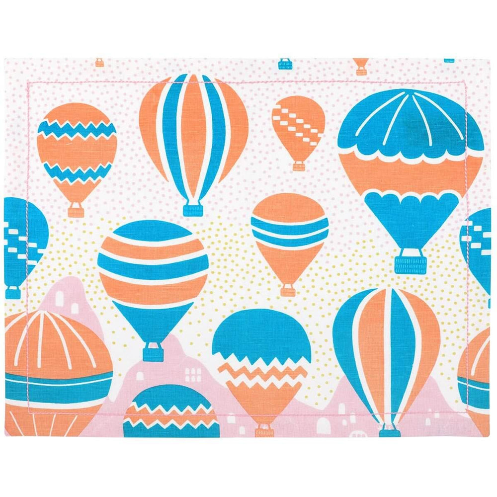 Set of two placemats, handprinted with a fun print of hot air balloons floating over the Cappadocian landscape.