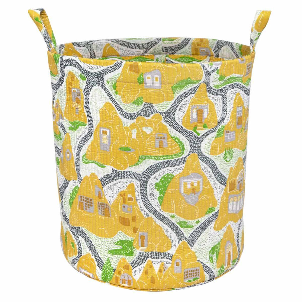 Hand screen printed with our yellow Cave House print inspired by travels in Turkey, it is made with soft yet durable quilted cotton and finished with handles that make it easy to pick up and move between rooms.
