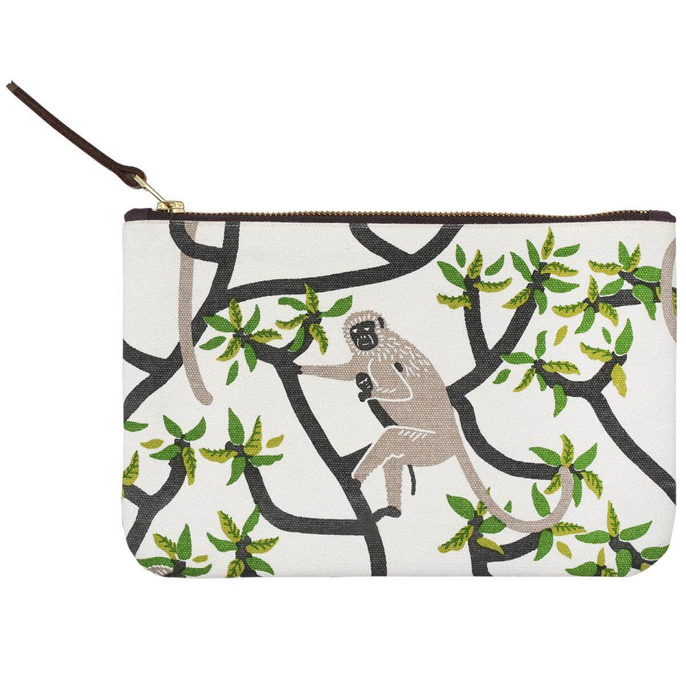 A well made canvas clutch pouch handprinted with a playful pattern of cheeky langur monkeys. Sturdy enough to be used as a clutch, it is also super useful for keeping documents safe when you travel. A great gift idea.