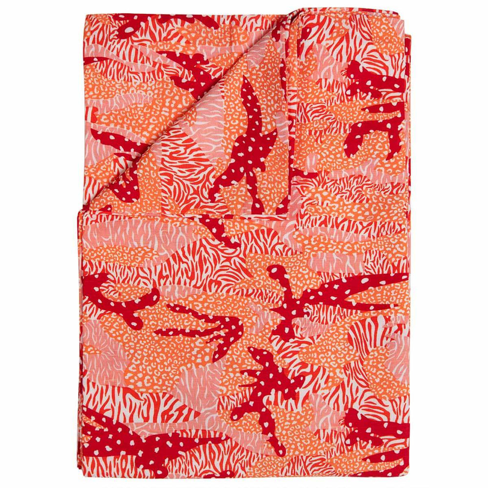 Brighten any bedroom with this orange duvet and pillowcase set, hand screen printed with a vibrant mix of camouflage and animal print patterns. Made from naturally breathable cotton linen, it will soften with every wash.