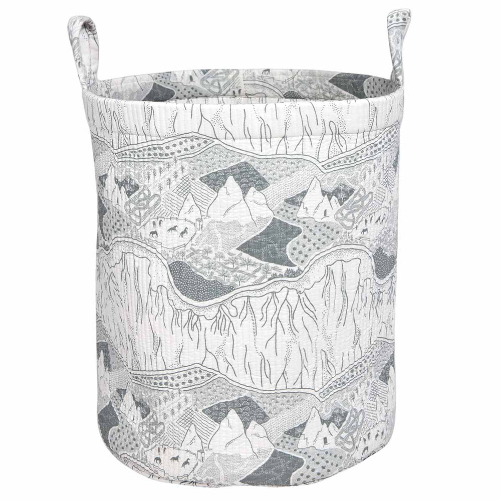 Hand screen printed with our grey Valley Views fabric this quilted cotton basket is a stylish and practical storage solution.
