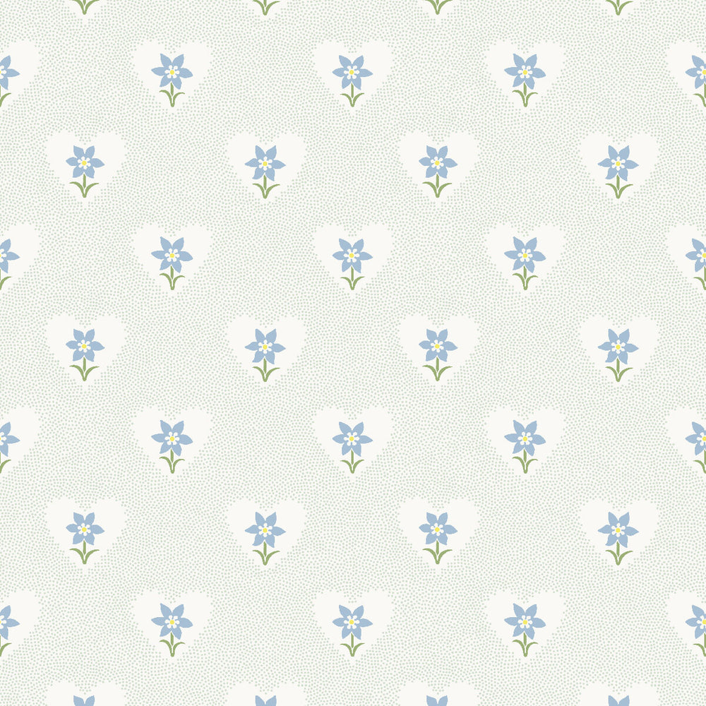 Featuring delicate blue daffodils nestled within heart-shaped motifs, this small-scale floral wallpaper brings charming springtime freshness and gentle pattern into your home. Perfect for creating a light, uplifting atmosphere, it works beautifully in any room, from a bedroom to hallway or living area.