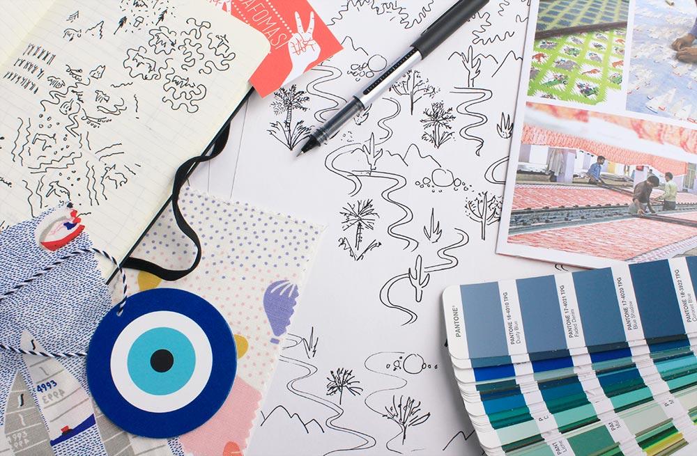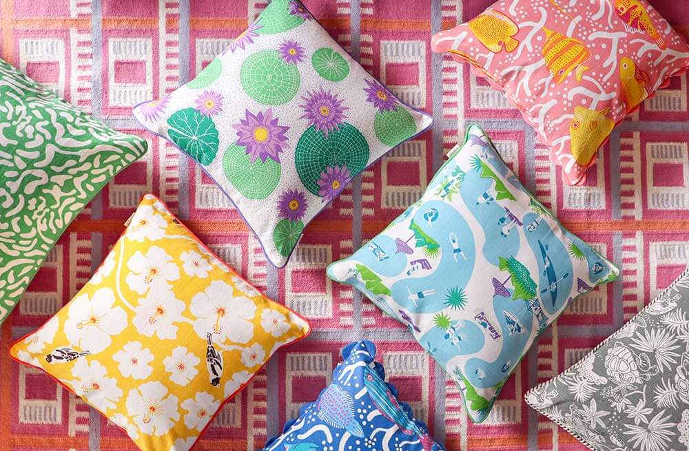 We design original illustrated fabrics, homewares and accessories that tell the story of our adventures around the world. Based between the UK and India, our aim is to create beautiful, characterful and uplifting patterns that bring joy and colour to your life.