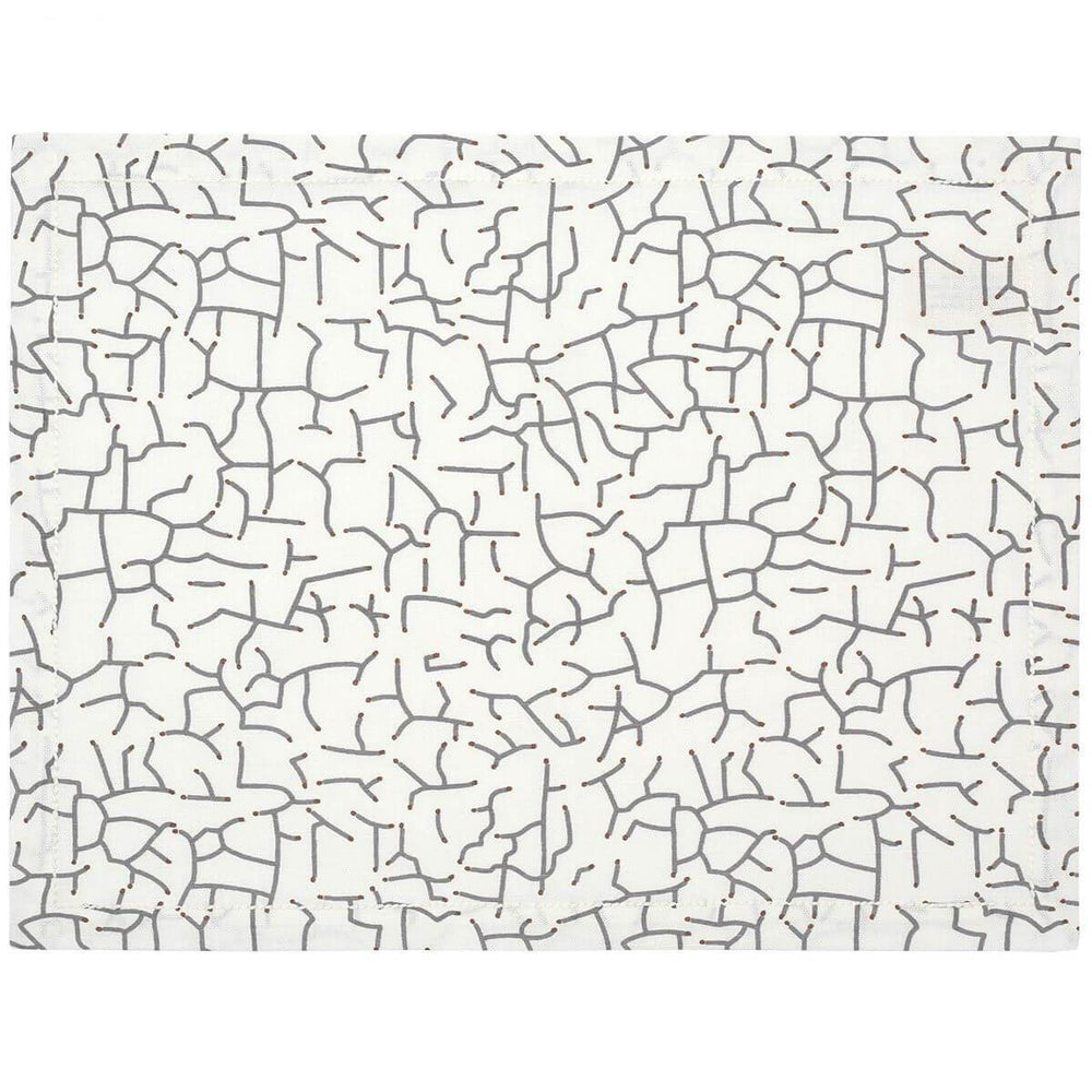 Set of two handprinted placemats featuring a crackle print inspired by arid earth. With copper accents and a white stitched border, they make for a chic table setting.