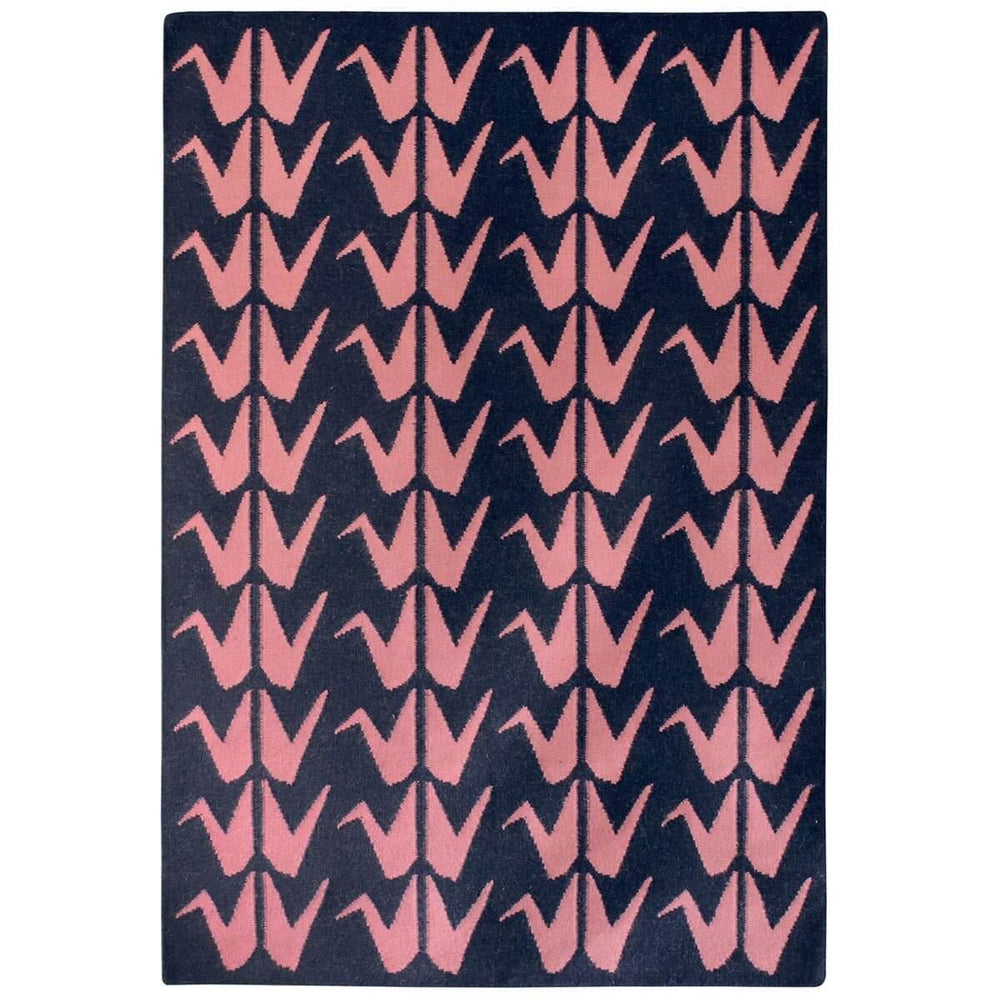 A new wool version of our Japanese-inspired origami crane motif dhurrie, handwoven in blue and pink, two of our favourite colours!