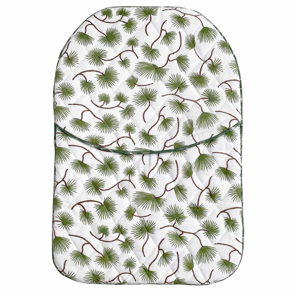 Beautiful quilted hot water bottle cover, made from our handprinted Pine fabric.