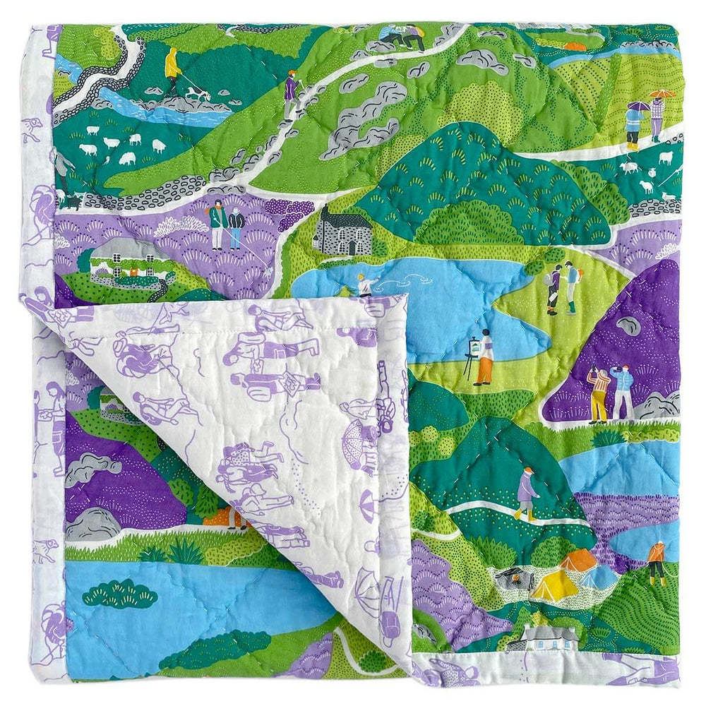 Inspired by the lakes and mountains of the English countryside, the Fells Baby Quilt beautifully illustrates scenes that will capture the imagination of kids around the world.